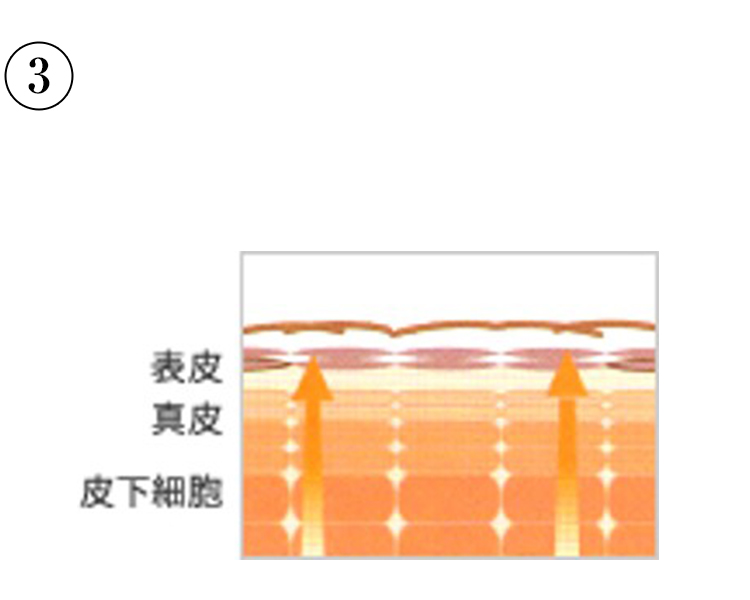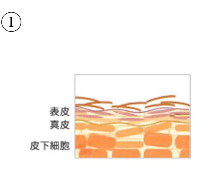 基底層や真皮層にコラーゲン・ヒアルロン酸などの美容成分を肌深部へ直接送り込み浸透させます。